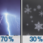 Temperature: 19°F Wind Speed: 10 to 25 mph Wind Direction: WNW Forecast: Showers and thunderstorms likely before midnight, then a chance of rain and snow showers. Cloudy, with a low around 19. New snow accumulation of less than half an inch possible. |