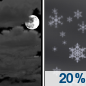 Temperature: 12°F Wind Speed: 14 mph Wind Direction: SW Forecast: A slight chance of snow before midnight. Mostly cloudy, with a low around 12. Chance of precipitation is 20%. |