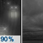Temperature: 37°F Wind Speed: 1 to 6 mph Wind Direction: NW Forecast: Rain before 7pm. Cloudy, with a low around 37. Chance of precipitation is 90%. |