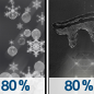 Temperature: 18°F Wind Speed: 20 mph Wind Direction: W Forecast: Rain and snow likely. Mostly cloudy, with a low around 18. Chance of precipitation is 60%. |