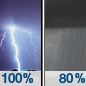 Temperature: 56°F Wind Speed: 5 to 15 mph Wind Direction: S Forecast: Rain and a slight chance of thunderstorms before 10pm, then rain showers. Some of the storms could produce heavy rain. Cloudy, with a low around 56. South wind 5 to 15 mph, with gusts as high as 25 mph. Chance of precipitation is 100%. New rainfall amounts between a half and three quarters of an inch possible. |