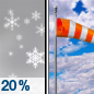 Temperature: 6°F Wind Speed: 12 to 15 mph Wind Direction: SSW Forecast: A slight chance of snow before midnight. Mostly cloudy, with a low around 6. South southwest wind 12 to 15 mph. Chance of precipitation is 20%. |