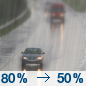 Temperature: 48°F Wind Speed: 15 mph Wind Direction: SW Forecast: Rain. Mostly cloudy, with a high near 48. Chance of precipitation is 80%. |