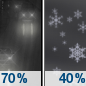 Temperature: 31°F Wind Speed: 8 mph Wind Direction: SW Forecast: Rain likely before 4am, then a chance of rain and snow. Mostly cloudy, with a low around 31. Chance of precipitation is 70%. |