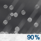 Temperature: 36°F Wind Speed: 6 to 9 mph Wind Direction: SW Forecast: Rain showers. Cloudy, with a low around 36. Chance of precipitation is 90%. |