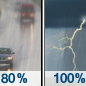 Temperature: 64°F Wind Speed: 2 to 6 mph Wind Direction: SE Forecast: A chance of rain before 7am, then rain and patchy fog between 7am and 1pm, then rain and a slight chance of thunderstorms. Cloudy, with a high near 64. Southeast wind 2 to 6 mph. Chance of precipitation is 100%. New rainfall amounts between a quarter and half of an inch possible. |