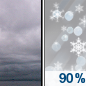 Temperature: 34°F Wind Speed: 2 mph Wind Direction: S Forecast: Rain showers. Cloudy, with a low around 34. Chance of precipitation is 90%. |